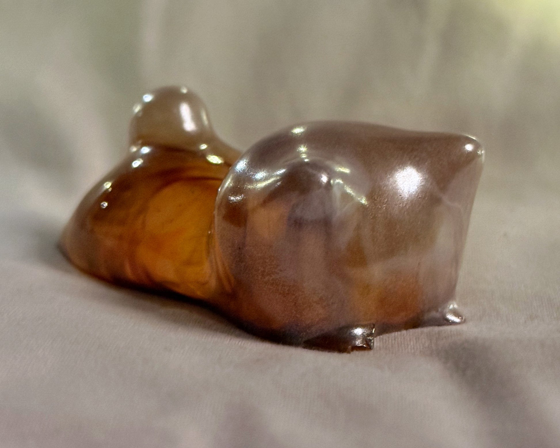 The Tiny Cat Orange Pearl glows like a captured sunset — radiant, gentle, and full of warmth. Handcrafted from luminous resin, this miniature cat shimmers with soft golden-orange tones that shift beautifully in the light. Its peaceful pose and subtle pearlescent finish make it a calming addition to any space.