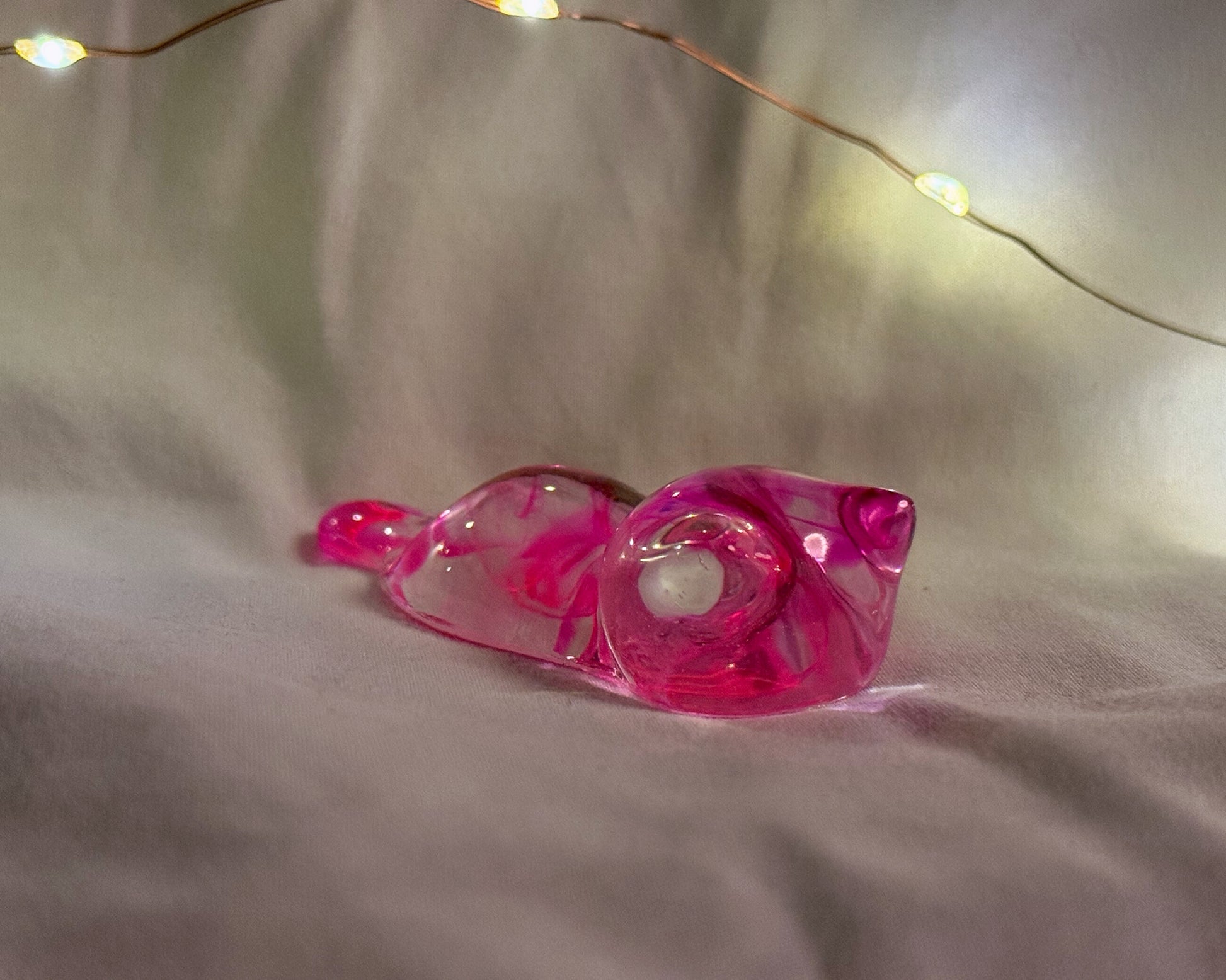 The Tiny Cat Pink Rose brings a touch of playfulness and sweetness to any space. Its vivid rose tones glow softly in the light, capturing the warmth of a blooming flower in resin form. Handcrafted with care, this little cat is full of life, charm, and delicate beauty — a joyful keepsake for collectors and cat lovers alike.
